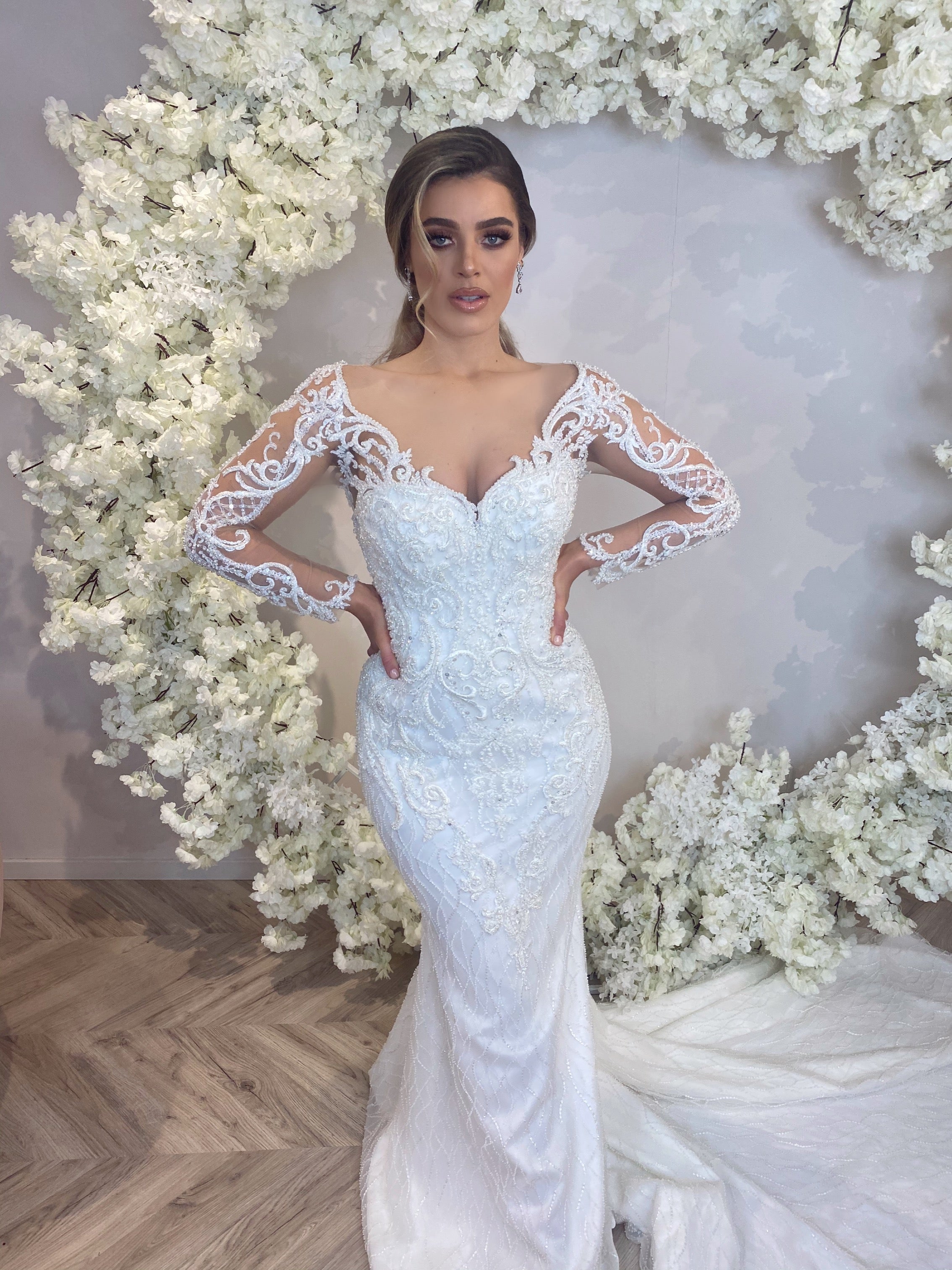 Bruidsjurk Arianne is dé perfecte keuze voor de bruid die op zoek is naar een vrouwelijke, sensuele look met klasse. Deze prachtige jurk in maat 46 is uitgevoerd in een flatterend trompetmodel dat je rondingen mooi accentueert en elegant uitloopt vanaf halverwege het dijbeen.